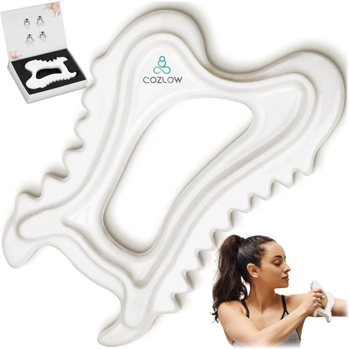 The ceramic gua sha massage tool by COZLOW offers premium muscle scraping for lymphatic drainage and body contouring. Perfect for face and full-body therapy.